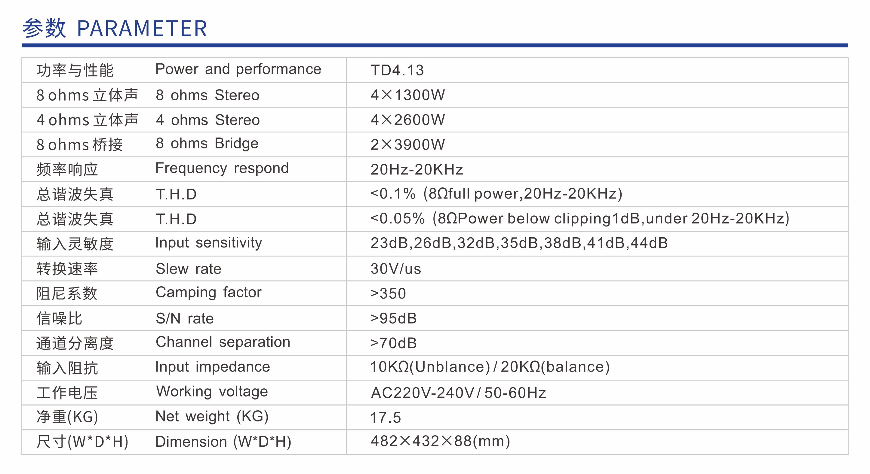 ,是一款安全可靠、稳定、宽频响、低失真、声音优美的高端专业功率放大器。适用于酒吧、